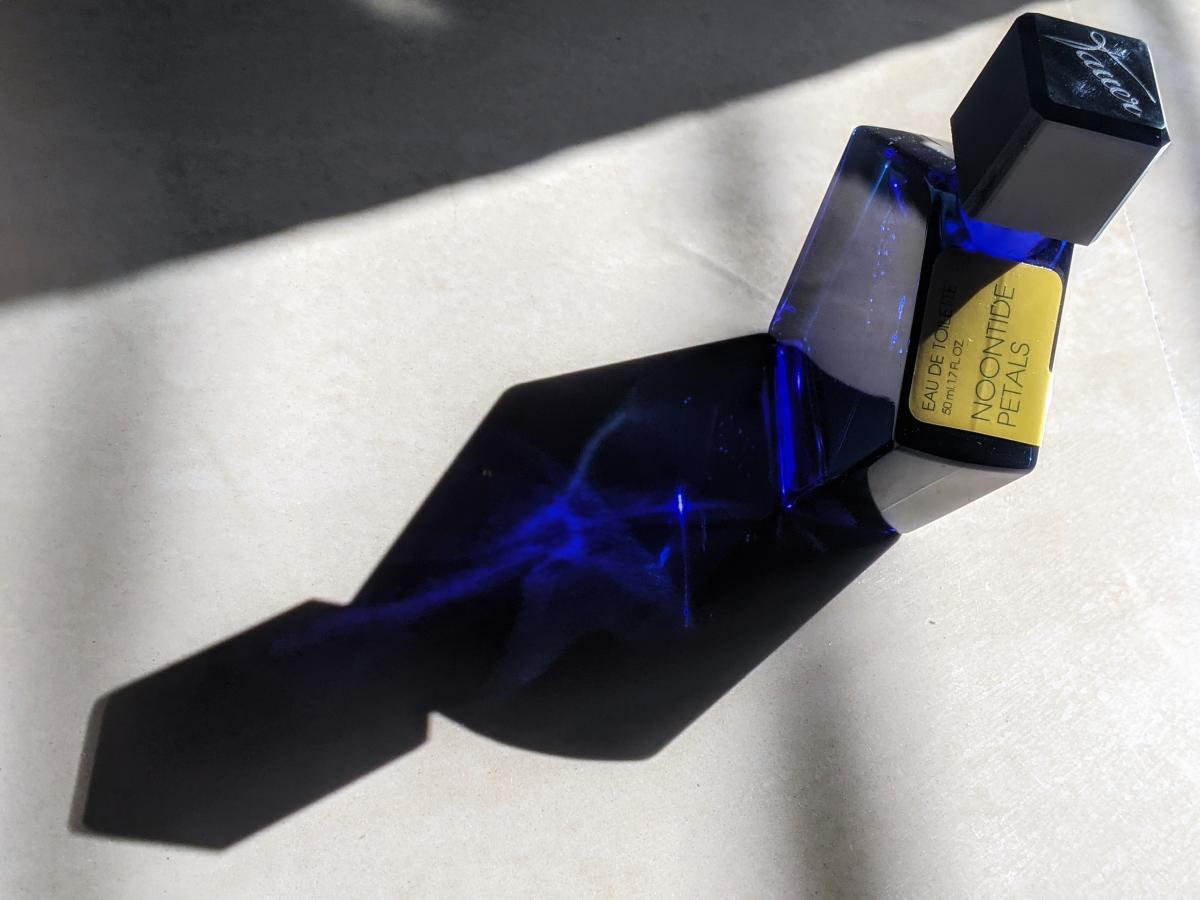 Cu Noontide Petals Andy readuce in actualitate aldehidele, acele accente intense cu miros sapunos, sintetic si abstract care atunci cand au fost pentru prima data utilizate in parfumuri au revolutionat de-a dreptul moda olfactiva. Dar daca in perioada lor infloritoare parfumurile cu aldehide erau foarte iubite si dorite, pe parcurs ele si-au pierdut din gloria si stralucirea de odinioara ajungand azi sa fie uitate intr-un con de umbra.
